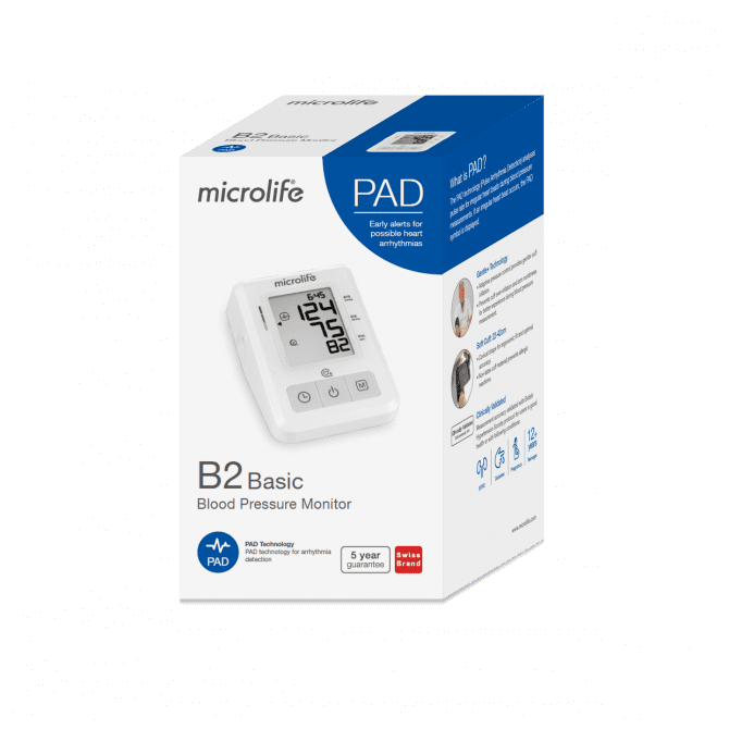 The MicroLife B2 digital automatic blood pressure monitor enables a comfortable and accurate upper arm blood pressure measurement at home.